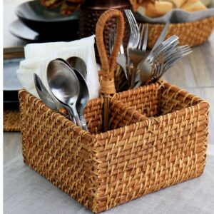 The Martha Stewart Rattan Woven 4-Section Flatware Caddy is the perfect picnic or dining companion. With 4 compartments, it’s easy to keep napkins, spoons, forks, and knives neatly organized on your table.