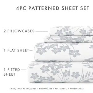 - 4-piece set includes 1-flat sheet, 1-fitted sheet and 2-pillowcases (twin sets come with 1-pillowcase)