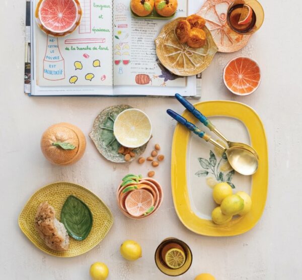 Be the first to review “10″ L Stoneware Lemon Shaped Platter w Leaf Dish VAT $41.80”