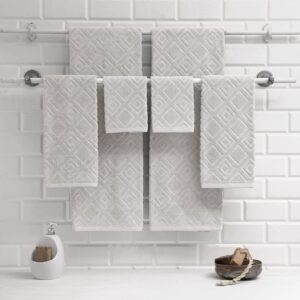 - 6-Piece Set – Includes 2 large bath towels (30 x 54 inches), 2 hand towels (16 x 27 inches), and 2 washcloths (12 x 12 inches).