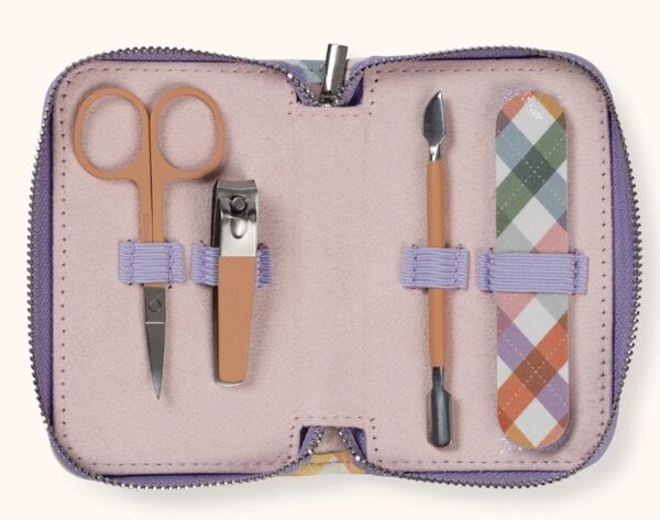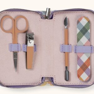 This five-piece manicure set features full-color artwork and comes with everything you need for perfectly groomed nails. The zippered travel-size case is made of a water-resistant vegan PU material and holds matching nail clippers, scissors, a cuticle pusher, and an emery board. Keep one in your handbag, overnight bag, or desk drawer.