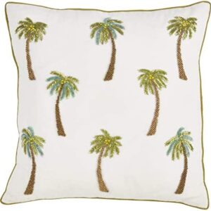 Beaded Palm Tree Pillow – Poly Filled – 18″ – White/Square Vat $99.00