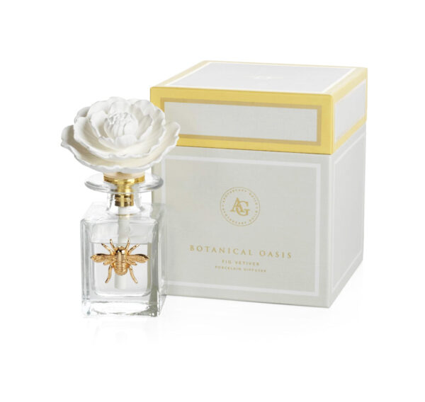 This earthly apothecary guild porcelain diffuser elevates the spirit and magically transforms any room into heaven on earth. Thye have traveled the world and collected a melange of the highest quality oils derived from organic elements. This diffuser exudes refined luxury combined with evocative elegance and provides sublime reverie for every moment. The fragrance has a fresh, light floral scent.Â