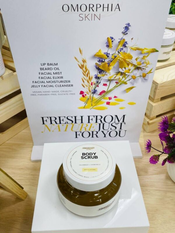 Experience a sense of well-being and radiance with our Omorphia Organic scrubs, available in a variety of enticing scents.