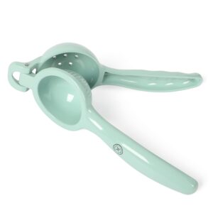 Zesty drinks or dishes, or pretty much any kind of recipe, add a refreshing zing that brighten up palates, appetites, and mealtimes. Squeeze out natural fruit juices with the Martha Stewart Erwin Cast Aluminum Citrus Squeezer. Made from durable cast aluminum, this handy kitchen gadget offers a strong and comfortable grip to get every last drop from lemons and other fruits. The beautiful coating protects the sturdy aluminum body from scratches, offers easy cleanup, and does not react with acidic juices. Roll up your sleeves and serve up homemade lemonade straight from our kitchen or bar. Hand wash only.