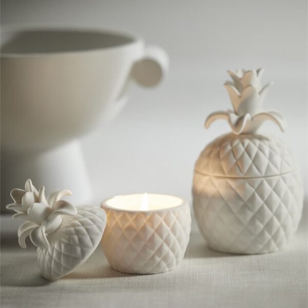 The Ceramic Pineapple Candle is a unique and decorative piece that will add a touch of tropical elegance to any room. With its intricate design and high-quality construction, this candle is perfect for creating a relaxing and inviting atmosphere. The ceramic pineapple shape of the candle adds a touch of whimsy and tropical charm to any setting. When the candle is finished burning, the vessel can be reused as a decorative piece.