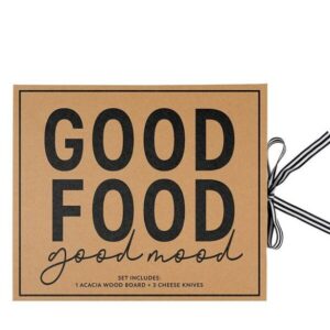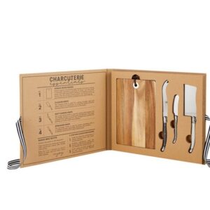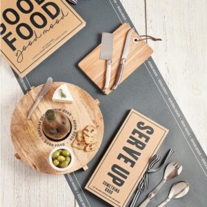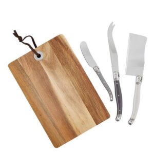 This acacia wood cheese board comes with three assorted cheese knives including, a cleaver knife, a soft cheese knife, and a spreader. Perfect to display your favorite snacks at any gathering.