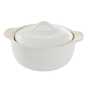 The Crock Pot Artisan 2.3 Quart Round Stoneware Casserole with Lid in White meets any home cook’s baking needs. This baking dish features a soft and simple white color on an oven safe stoneware body. Microwave safe for easy reheating and dishwasher safe for worry free cleaning afterwards. Broil or bake stews, pies, meats and more.