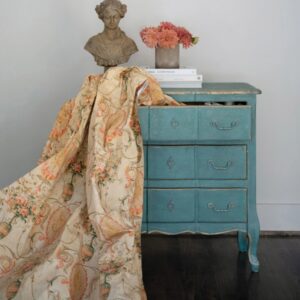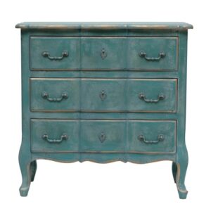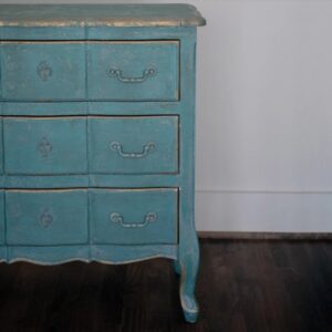 This wooden cabinet is a fun shade of blue and has a detailed gold edging. Perfect for storing all your favorite small objects, this piece contains 3 drawers and is a fun pop of color in any space.