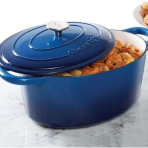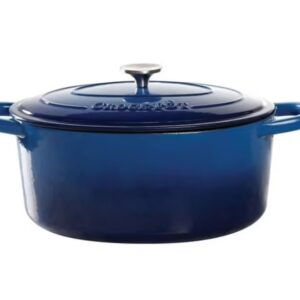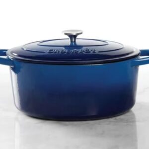 Gibson Home presents the 7-Quart Sapphire Blue Artisan Crock-Pot Cast Iron Dutch Oven with a Non-Stick Surface, ideal for delicious dinners for any occasion. The original slow cooker features a self-bating lid which creates a continuous basting environment. The Crock-Pot distributes and retains heat evenly and allows for a multitude of cooking techniques. Generous oversized handles and stainless knobs provide sturdy grip to increase mobility. Cookware works on gas, electric, ceramic, and induction cooktops as well as bake or broil in any convention or conventional oven. Sturdy, rust-free, and easy clean. Hand wash is recommended to keep the integrity of the pot.