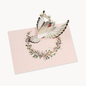Our Pure Alchemy Collection features cheeky salutations and pop-ups mixed with intricate laser-cutting. A petite bird soars outward, bearing laurels for the recipient.