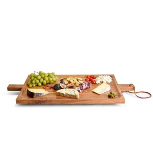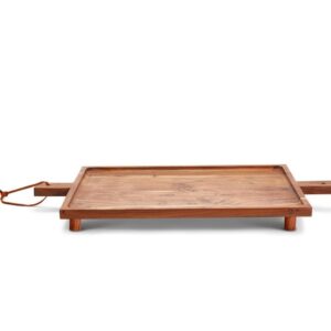 Crafted of beautiful acacia wood, our rustic serving board gives a boost to appetizers, cheese or dessert. Raised on footed legs, the board adds a bit of height to buffet spreads and cocktail table offerings.