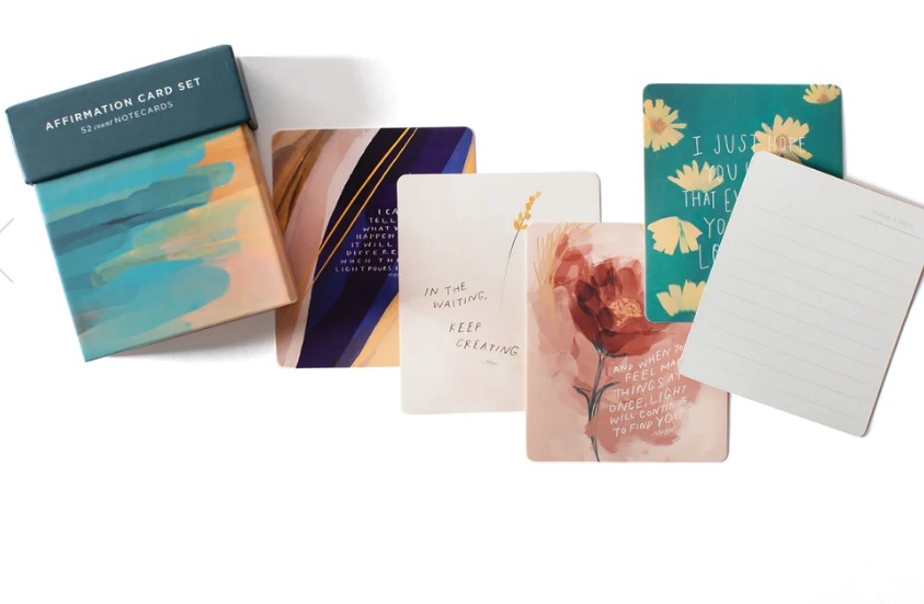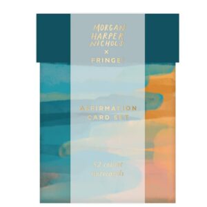 Set of 52 unique mini affirmation cards (1 for every week of the year), featuring exclusive artwork and inspirational messages by Morgan Harper Nichols. Includes lined backside on each card for notes to self or friends. Packaged in a decorative gift box.