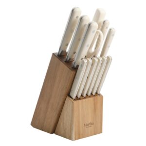 Ruxton 14 pc Cutlery Set W/Ashwood Block – Linen – ABS Forged Handles – SS – 2.5 mm / 1.7 mm