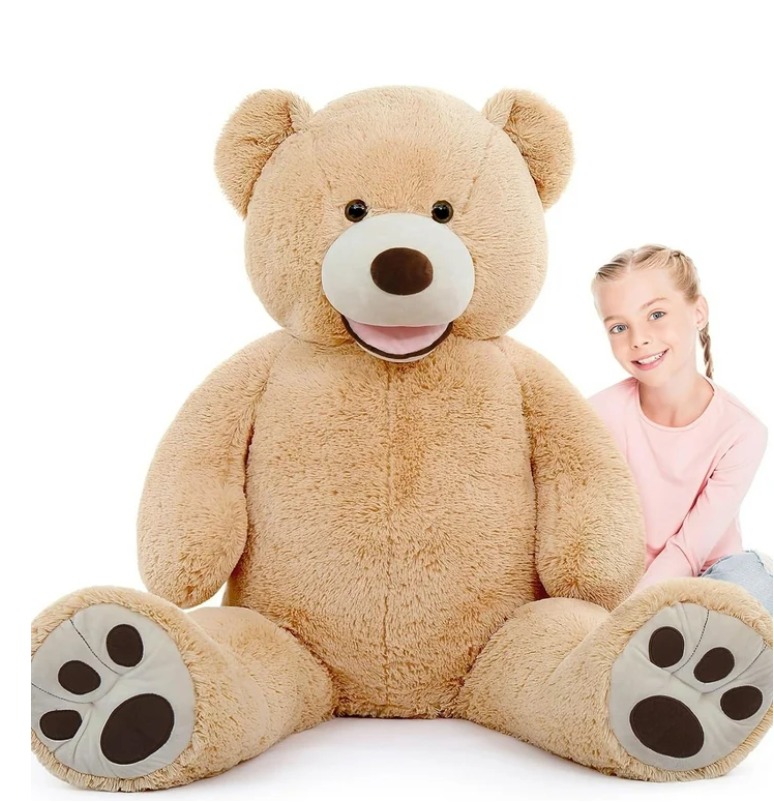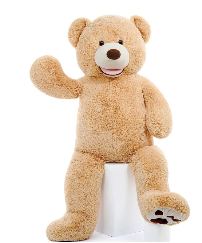This MorisMos giant adorable teddy bear is about 51 inches, with a ribbon on the neck. The plush toy made of 100% polyester and filled with quality PP cotton, feels very soft and cuddy. The best gift for everyone you love on Christmas, Thanksgiving Day, Valentine’s Day, Birthday, Anniversaries or any special day. Come and take it home now