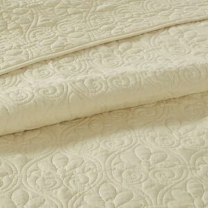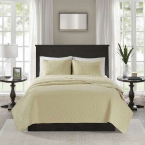- 3 Piece Reversible Coverlet Set With Patterned Quilting