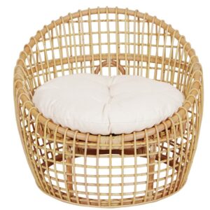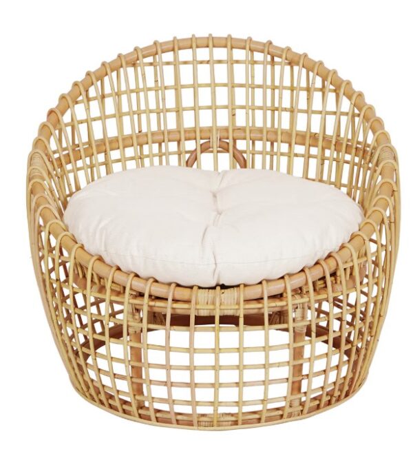 Bondi Round Open Weave Rattan Occasional Chair With Cushion, Natural rounded back design offers the perfect blend of style and comfort, while the beautiful open weave design adds an elegant touch. With a light natural finish hand-finished to perfection, this chair is a true work of art.