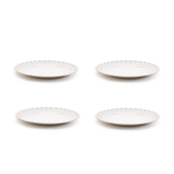 Simple, elegant and chic -Aesthetic and functional everyday dinner set. This 4-piece melamine lattice rim set makes for a nice addition to your existing dinnerware pieces. Bringing a unique style to any gathering or even just your daily dinner routine. Exclusively design by Two’s Company.