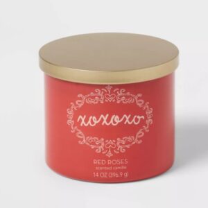 Set the right mood at home with the 3-Wick 14oz Candle XOXO Red Roses – Thresholdâ„¢. This scented candle comes in a lidded glass jar that lends to a soft ambiance. The rose scent will awaken your senses and give a refreshing vibe. With a burn time of up to 40 hours, you can store this 14oz Candle XOXO Red Roses and light it up when you need a well-deserved break.