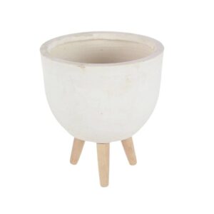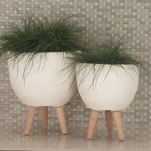 These fiber clay and wood planters brings tranquility to your space by allowing you to fill them with plants—hence it promotes wellness and creates an immediate feeling of relaxation. These decorative planters are sure to add bundles of charm to your home. Beautifully detailed, they feature round-shaped pots in textured white finish and beige slanted legs for extra support. These planters are made out of fiber clay, fiberglass, and wood with solid construction, offering durability and stability. Jazz up contemporary themed spaces using this set of charming accent pieces that are ideal for outdoor use. B