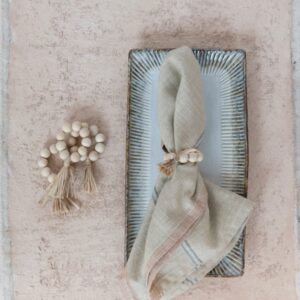 Be the first to review “Wood Bead Napkin Rings with Raffia Tassel, Set of 4 VAT $37.40”