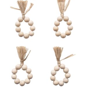 Wood Bead Napkin Rings with Raffia Tassel, Set of 4 VAT $37.40