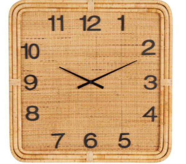 The Uma Brown Cane Wall Clock combines rustic charm with durability and style. Crafted from a blend of rattan for the frame, fir for enhanced durability, and MDF for stability, this brown wall clock is both sturdy and visually appealing. Its varnished finish enriches the farmhouse appeal, highlighting the richness of its brown color while contrasting elegantly with black numbers and clock hands. The woven design on the frame adds texture and visual interest, making it a standout piece that complements any wall decor effortlessly. Perfect for adding a touch of rustic elegance to your space, this farmhouse wall clock not only keeps time but also enhances the aesthetic of your home with its unique blend of materials and design.